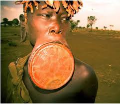 They would basically cut a slit in their lower lip and insert circular, flat discs or plugs of varying sizes. They would, over the course of a few months, insert gradually larger discs to stretch the slit. Apparently the larger the lip plug, the more value in terms of dowry her family could expect when she got married. They wouldn’t wear them all the time, only when they were around men.